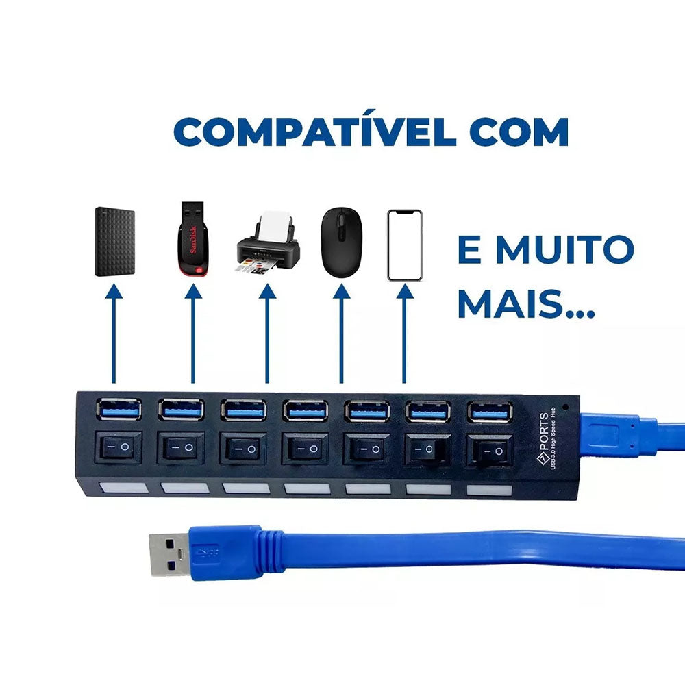 Hub Usb 7 Portas 3.0 Hi-Speed