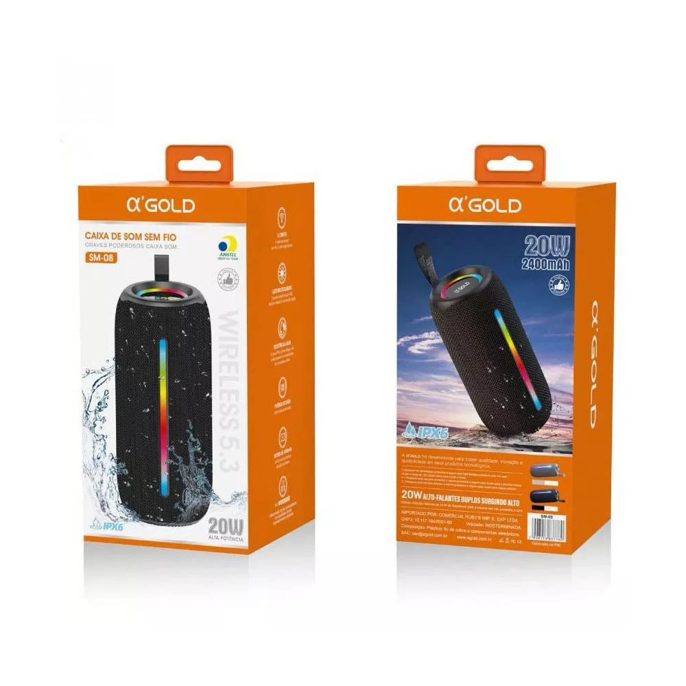 Caixa de Som Portátil Bluetooth aGold 20W IPX6 - SM-08