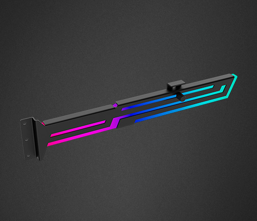 Suporte para montagem vertical de placas de vídeo. Permite a exibição da placa de vídeo dentro do gabinete trazendo mais estilo para o setup. Suporte com iluminação RGB. |