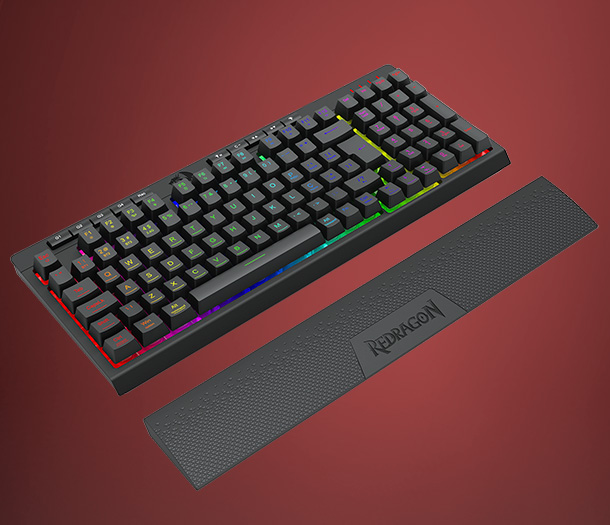 Para fornecer mais conforto durante longas sessões de uso, este teclado acompanha um apoio de pulso solicitado. Ideal para reduzir a fadiga e manter a posição ergonômica das mãos, o acessório se adapta perfeitamente ao teclado e pode ser retirado sempre que necessário, oferecendo flexibilidade e bem-estar na digitação.